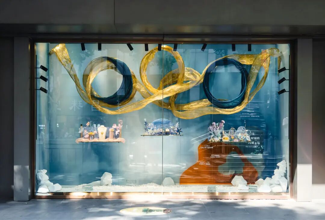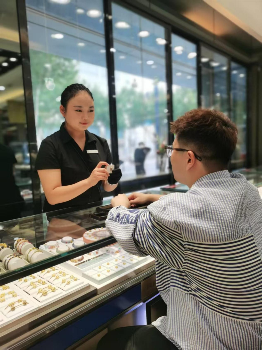 45岁的陈女士路过这个艺术橱窗时,不由得驻足停留:“我们兄妹三人,我是老幺,父母操劳了一辈子,他们的金婚纪念日马上就要到了,我想带他们来选一下金饰作为纪念,尽一份儿女的孝心。”