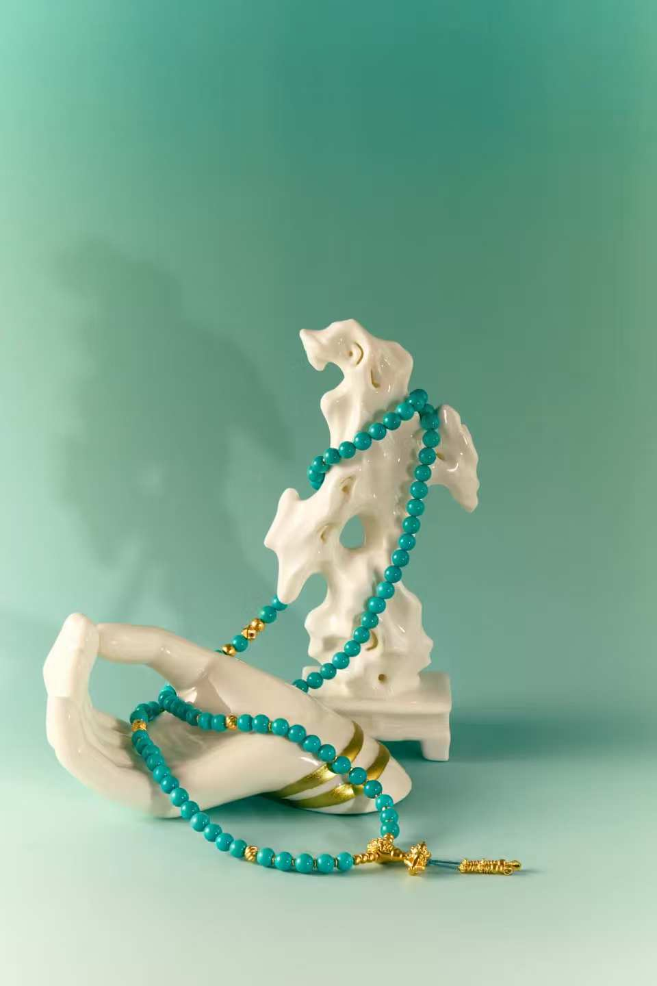 2025 AW中国国际时装周“鋆棠·传说”全新发布非遗联名高级珠宝。采用湖北十堰竹山特产高瓷绿松石,结合佛教文化创作的传统金工设计作品。以金护石,以石养心,古寺夕照,灵台清明。用古典哲学感受诠释珠宝之美。
