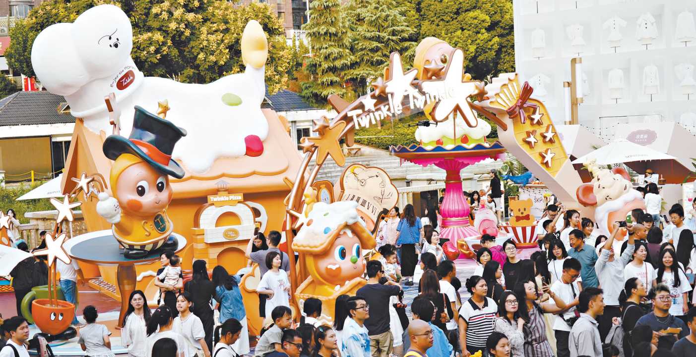 国庆中秋假期,位于汉街商圈的武汉SKP·K大道上人头攒动。