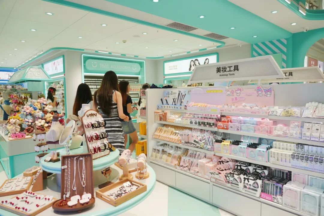 与传统名创优品门店不同,MINISO LAND特别设置了“IP商品体验区”。香薰、美妆蛋等联名款产品整齐陈列,消费者可现场试用,直观感受产品质感。针对亲子家庭,门店还贴心打造“儿童托管角”。家长购物时,孩子能在工作人员的细心看护下玩积木、读绘本,让家长无需分心,轻松享受购物时光。