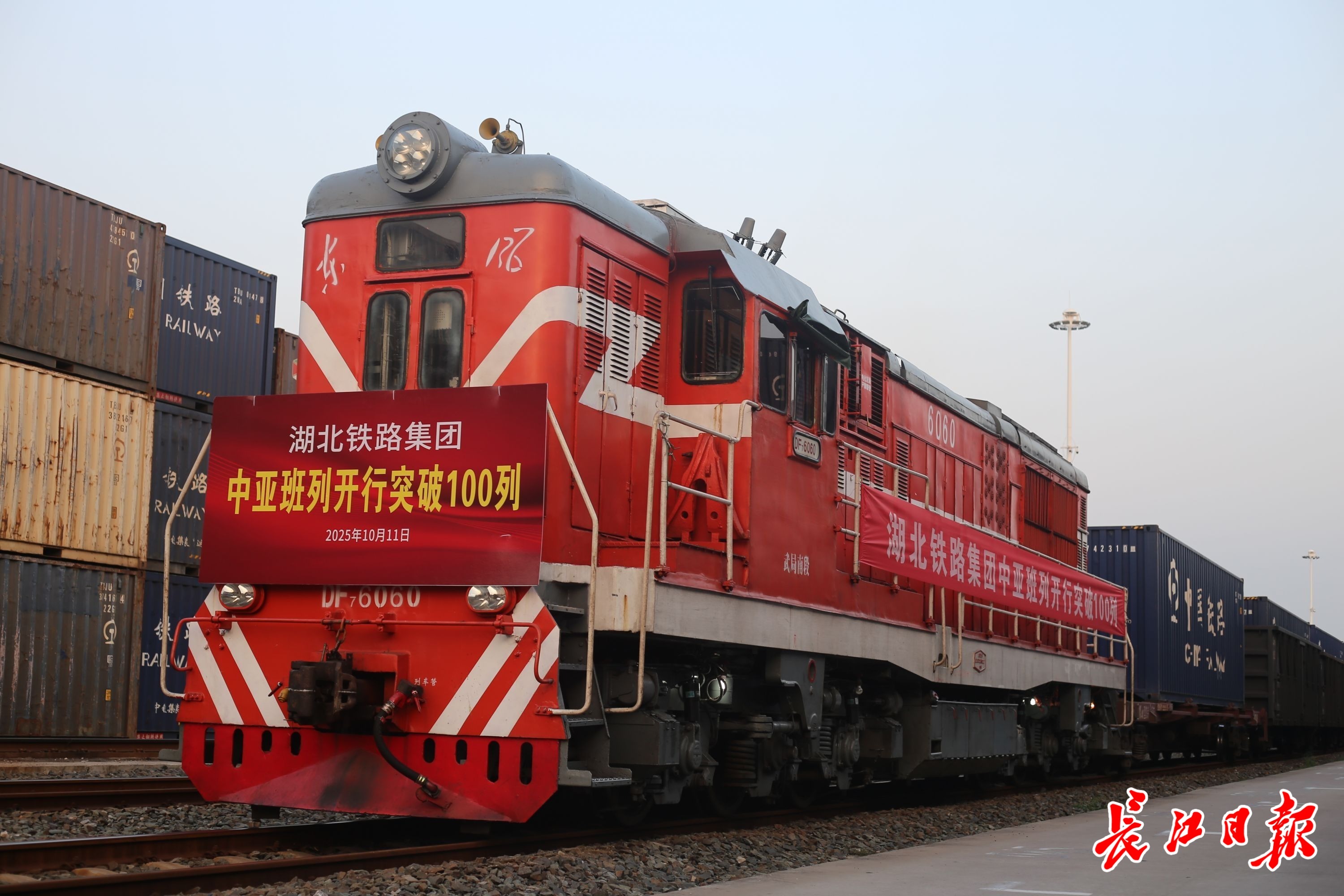 10月11日,一声长笛,一列满载货物的中亚班列,缓缓驶出武汉中铁联集吴家山中心站,向着乌兹别克斯坦奔驰而去。这是湖北铁路集团中亚班列(武汉)运营以来开行的第100列班列。