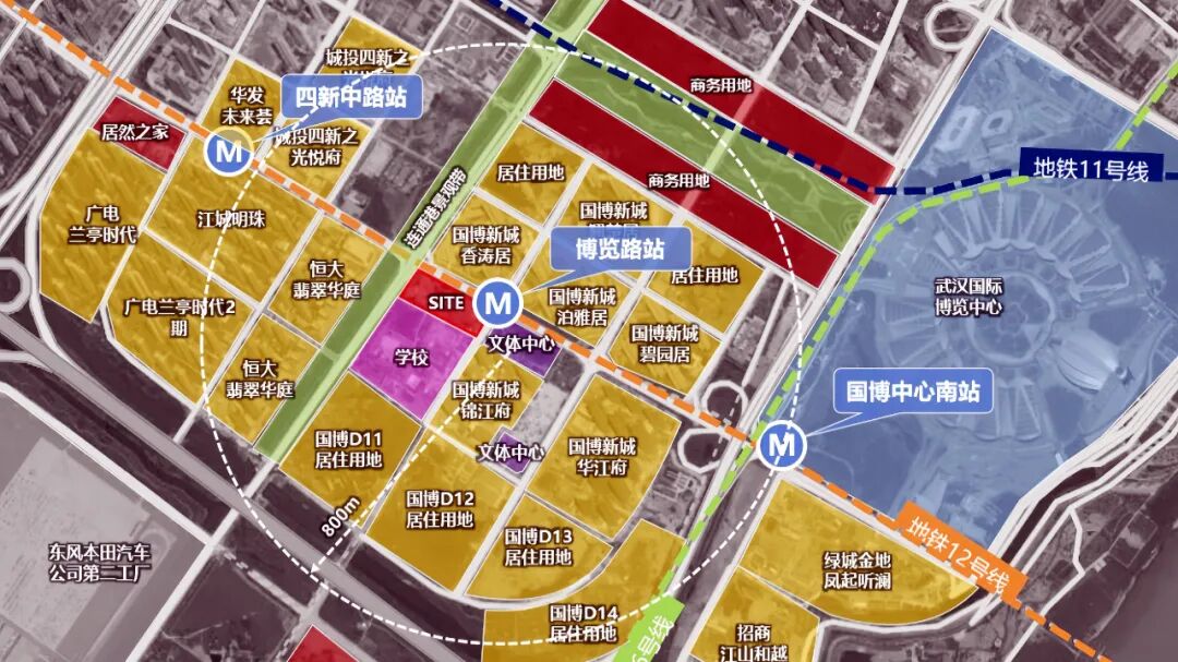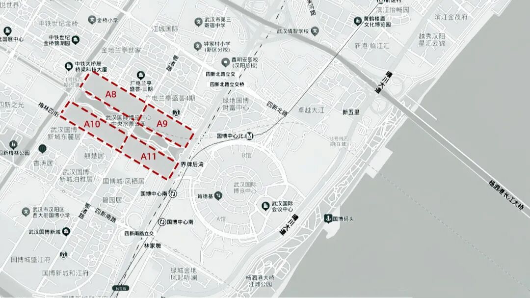 ○汉阳国博万象汇的效果图(最终效果以实际为准)国博A10地块位于汉阳国博新城板块核心区,毗邻城市地标「武汉国际博览中心」,紧邻国博中央水系景观公园。该公园作为国博新城的景观轴心,水系的南北两侧地块(国博A8、A9、A10、A11),先前规划为以商务用地为主的国博中心总部经济区,也是武汉市打造「国家会展中心城市」的重点功能区之一。