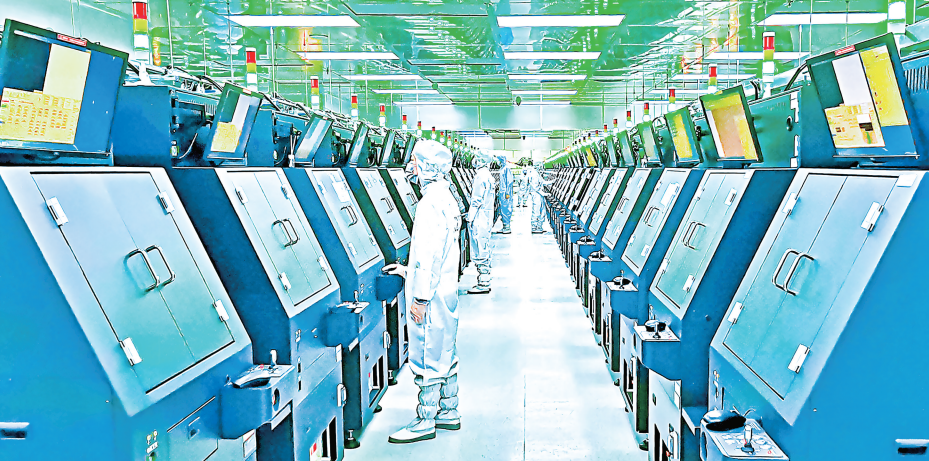 鄂州依托毗邻光谷的优势,以三安光电为链主,吸引显示芯片产业链上下游企业落户,与武汉共同助力湖北打造世界级“光芯屏端网”产业集群。图为位于鄂州葛店的三安光电生产线一角。