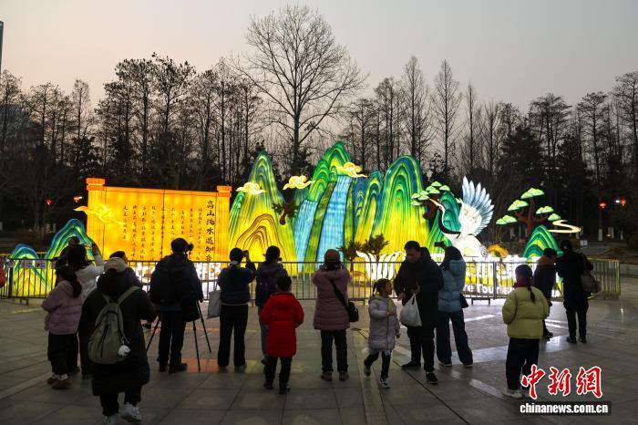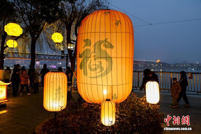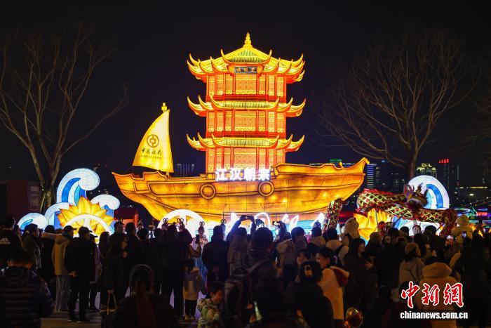 2月10日,农历腊月二十三,中国北方小年,2026武汉新春晴川灯会正式亮灯向市民开放,千米江滩化身光影长卷,黄鹤楼、武汉长江大桥、龟山电视塔与璀璨花灯同框,呈现出一幅“江汉揽胜”新图景。图为市民观赏灯会。