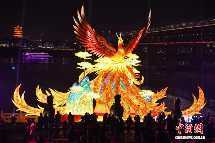 2月10日,农历腊月二十三,中国北方小年,2026武汉新春晴川灯会正式亮灯向市民开放,千米江滩化身光影长卷,黄鹤楼、武汉长江大桥、龟山电视塔与璀璨花灯同框,呈现出一幅“江汉揽胜”新图景。图为高达12米的“凤舞九天”与对岸黄鹤楼遥相呼应。