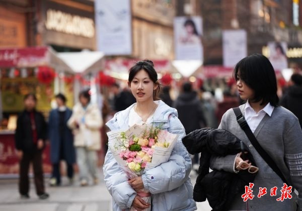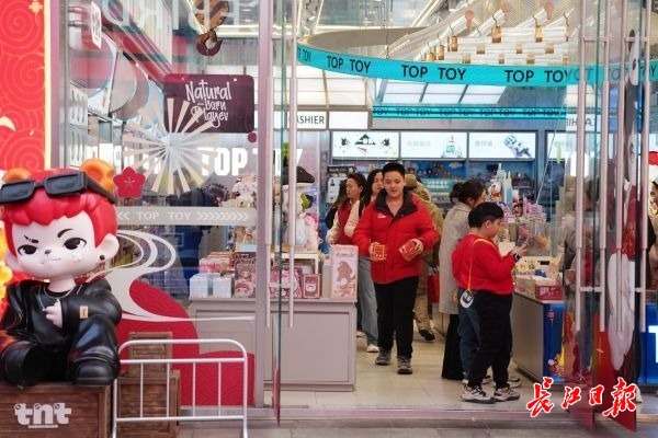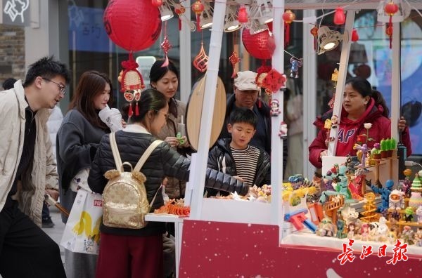 2月19日大年初三,武昌楚河汉街和武汉SKP大道头人头攒动,前来逛街、购物、拍照的游客及市民络绎不绝。市民漫步汉街,逛市集、选购数码产品和新能源汽车,畅玩乐购享受春节假期。