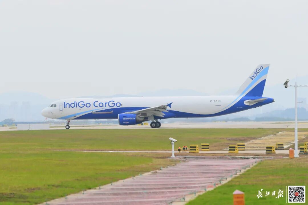 印度靛蓝航空6E8552次全货机在花湖机场跑道滑行。