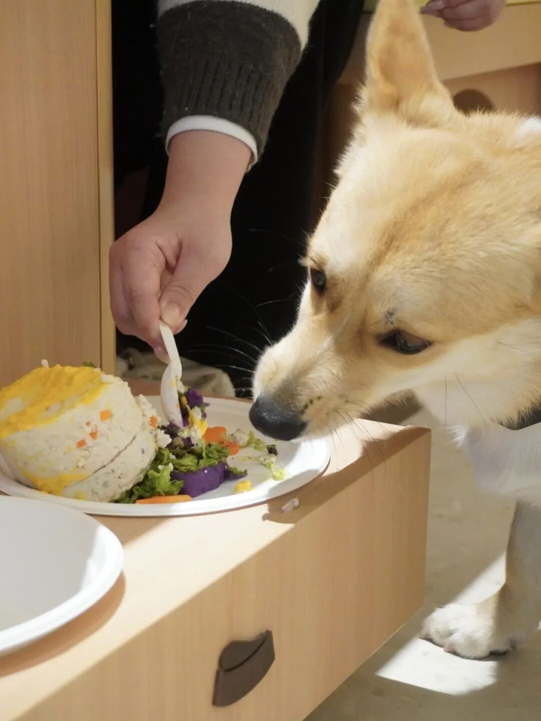 · 细节满分:餐桌下配有宠物专属餐盘架,现场设有“萌宠鲜厨”提供无盐鲜食,甚至还有“萌宠衣橱”供宠物换装拍照。