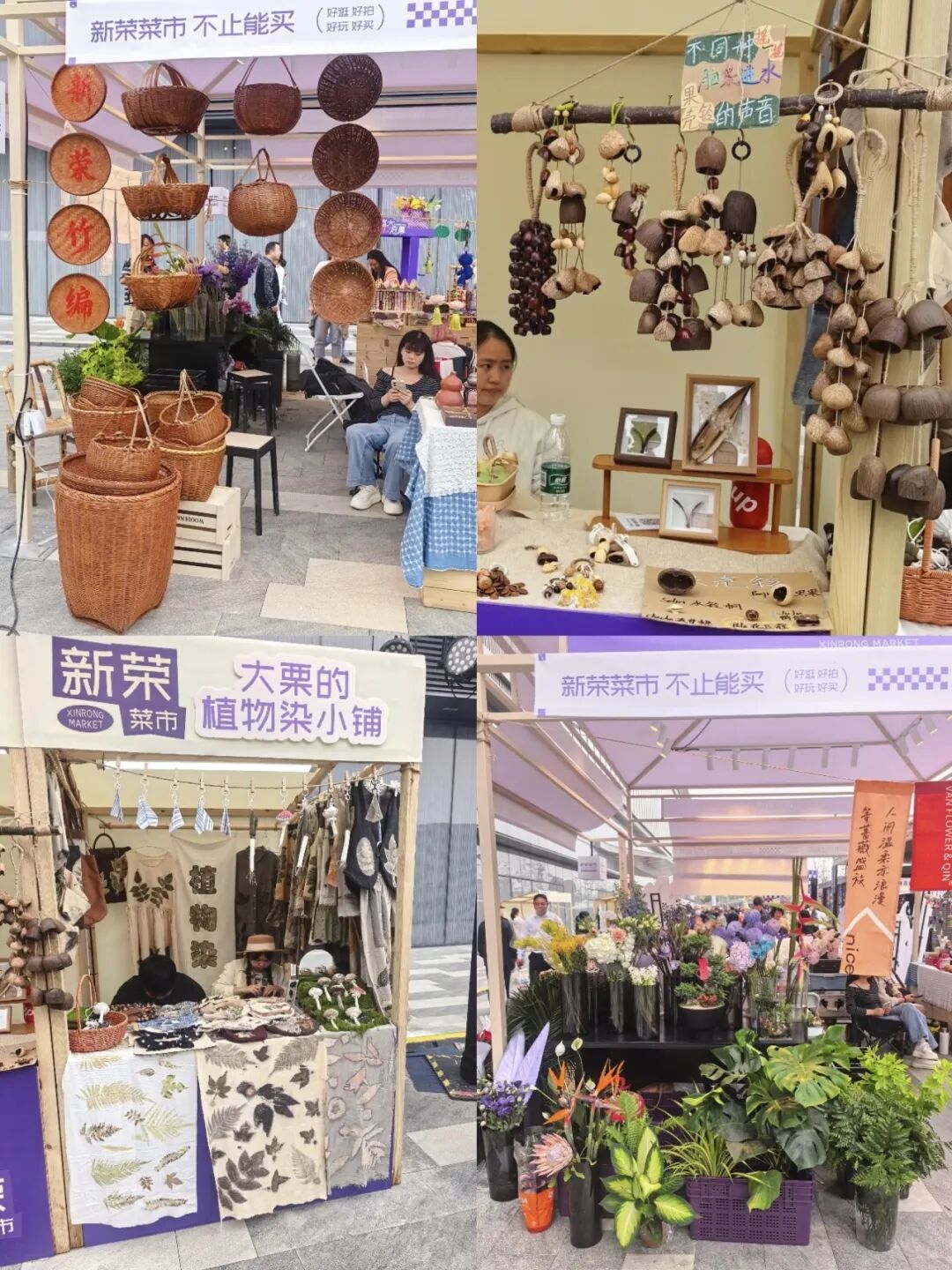 在江岸区后湖大道与汉黄路路口,新荣天街的南广场上,数百个紫色的“菜篮子”搭起了一个叫“新荣菜市”的创意市集。