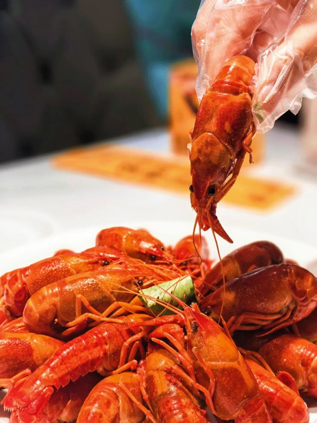 嘬虾姿势:戴上手套是斯文吃法,上手才是武汉嘬虾的正确打开方式——满手油光才是对小龙虾最大的尊重。