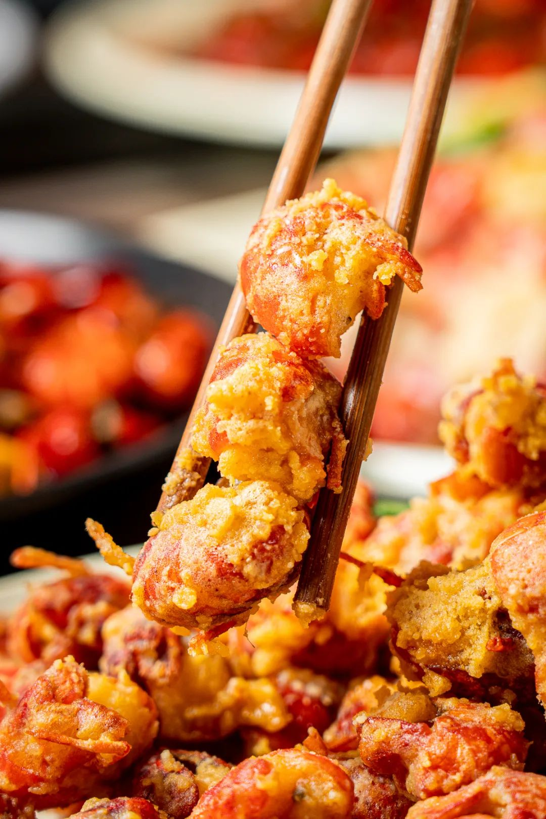 一棠龙虾直接把虾做成了花!吃惯了千篇一律的麻辣口,这里的咸蛋黄焗虾球绝对能刷新你对小龙虾的认知——炸得酥脆的虾球被咸蛋黄紧紧包裹,沙沙的绵密口感与虾肉碰撞在一起,一口下去咸香四溢,连壳都不想吐。