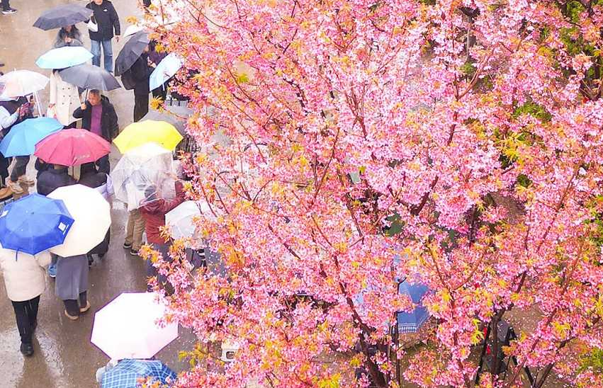 3月15日,乍暖还寒的东湖樱花园,细雨夹着凉风悄然洒落,让奔赴这场花事的市民和游客感受到别样意境。帅气的男生举着相机,为女友定格樱花雨中的笑颜;年轻的父母将孩子扛在肩头,凑近看那一树繁花;操着各地口音的游客在花下合影,衣角沾着花瓣与雨珠。 …
