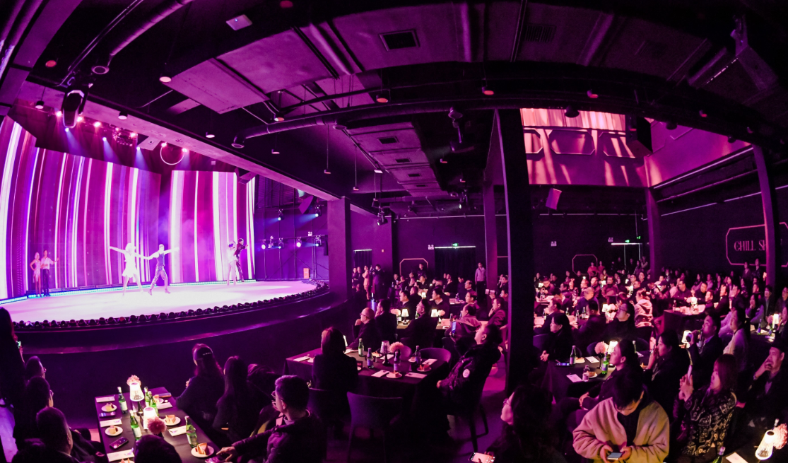 3月6日下午,CHILL SHOW演艺中心全球首店在黄陂甘露山文创城揭幕。中国首个“冰雪+沉浸式演艺”综合体正式亮相。 CHILL SHOW演艺中心里,游客正在欣赏演出。 现场,品牌发布、冰舞秀…