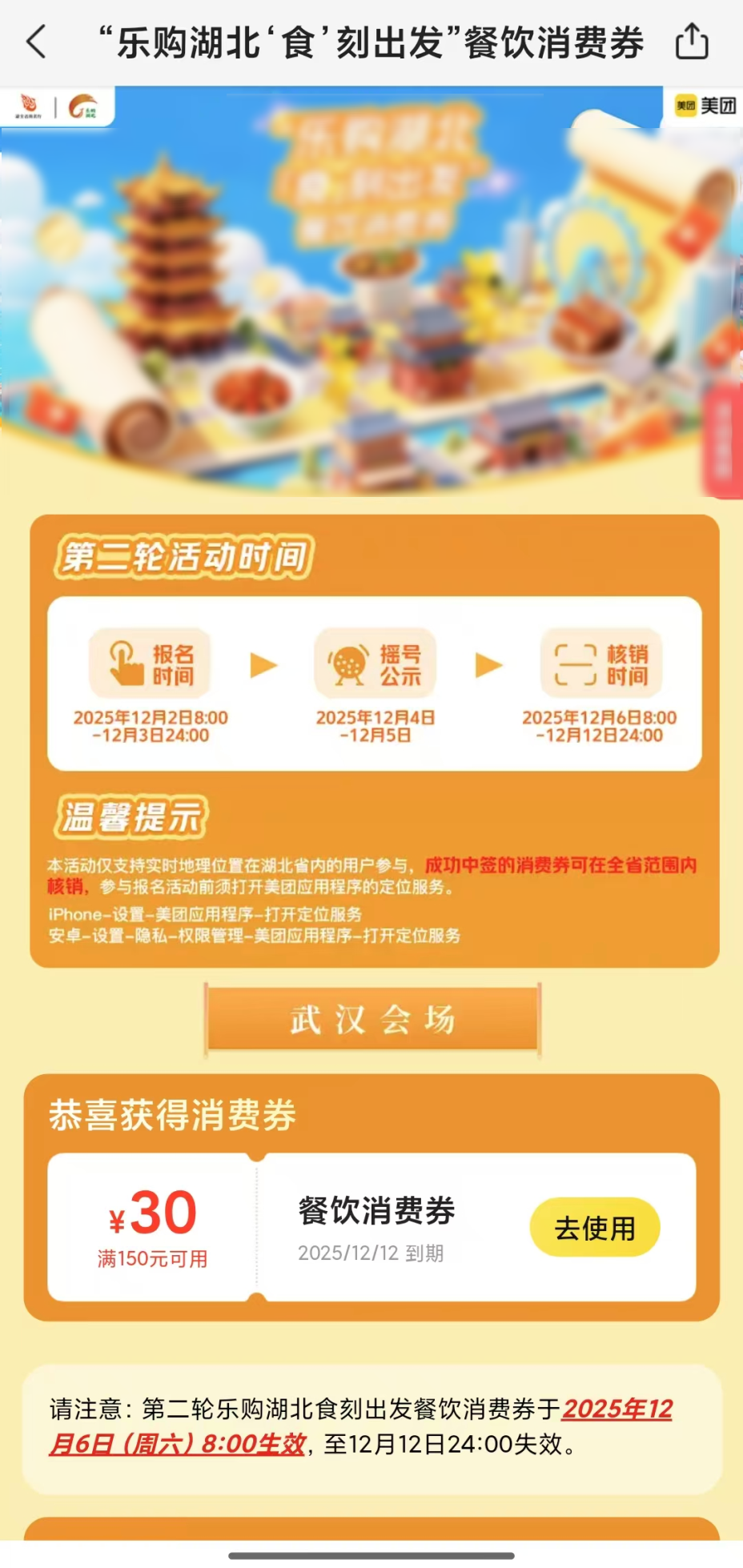 “乐购湖北”餐饮消费券第三轮