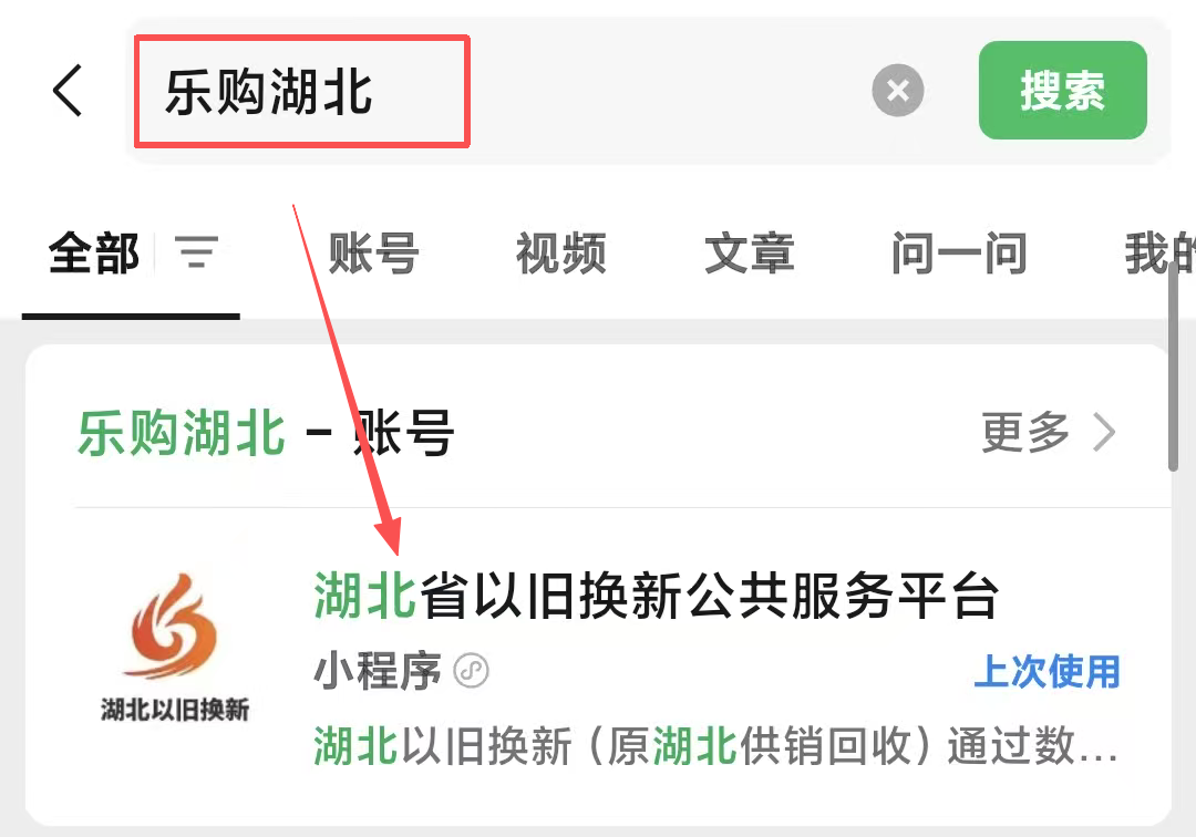 1、微信搜索“乐购湖北”“荆彩无限”直达原“湖北以旧换新”小程序