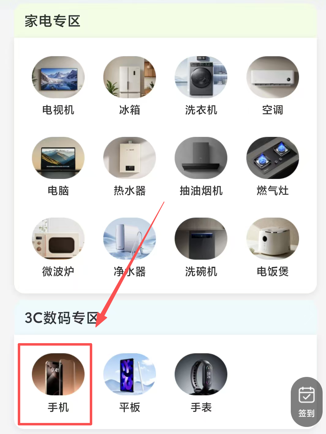 2、首页上方选择您所需的产品类型(以手机为例)。
