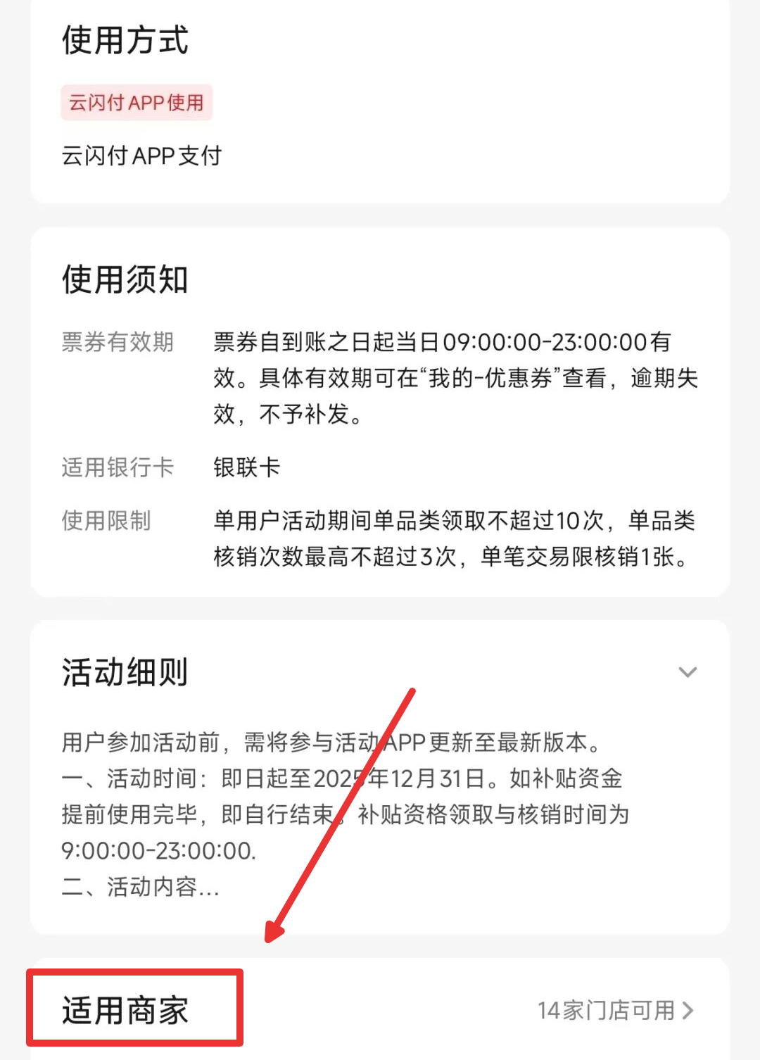 2.点开优惠券查看最下方,也可以查找适用门店哦。