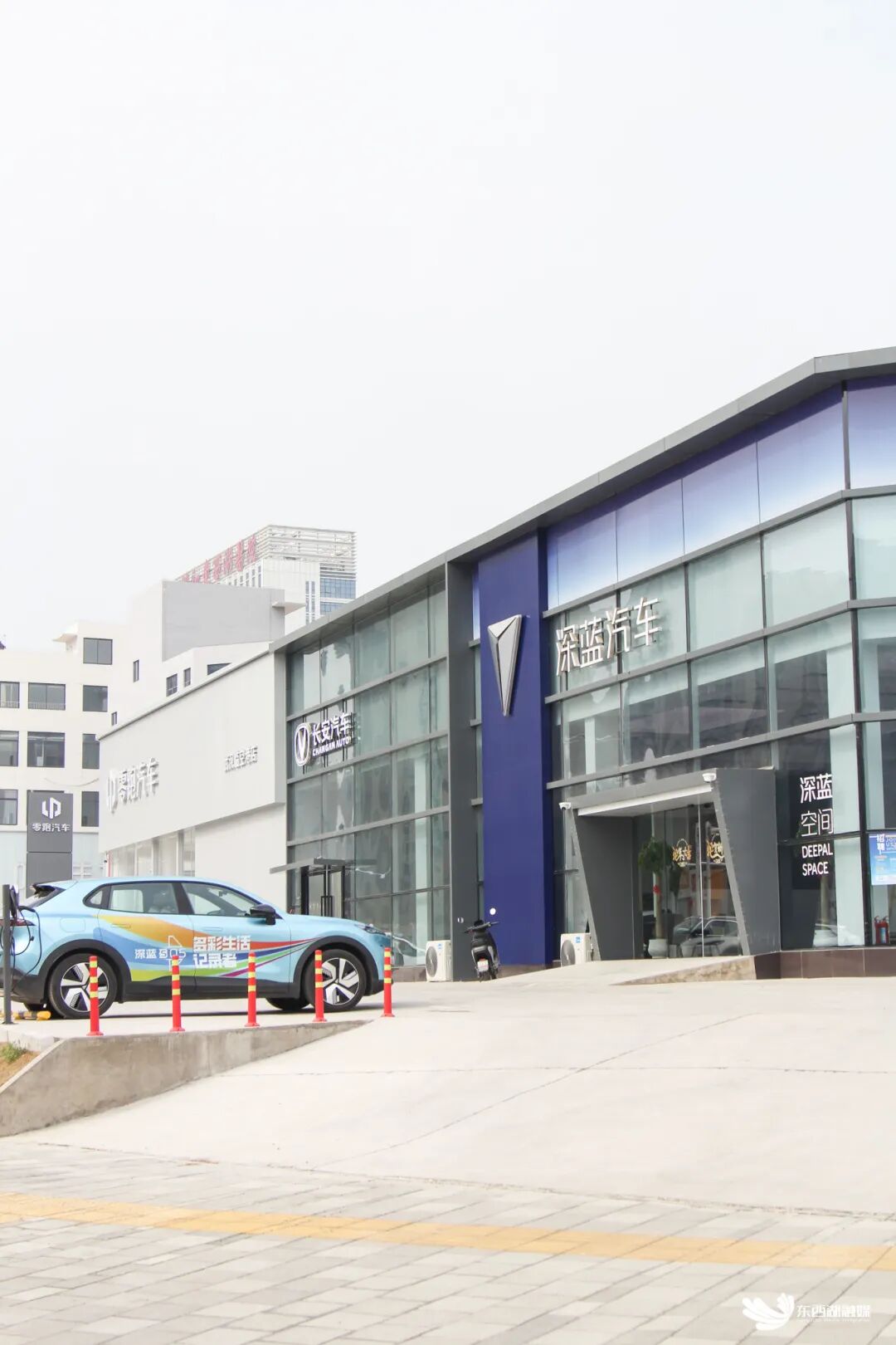 走进汽车小镇,白色的零跑中心格外醒目。