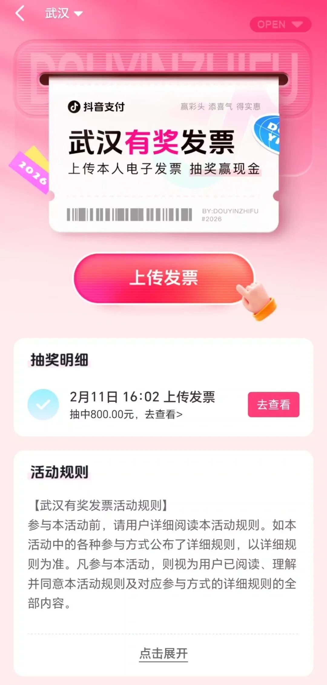 有奖发票激发消费潜力。自2月11日有奖发票试点工作启动以来,我市有奖发票活动持续火爆,市民参与热情高涨,主要指标位居试点城市前列。截至2月24日,累计参与抽奖超110万人次,上传发票368万余张,中奖金额3179.37万元。