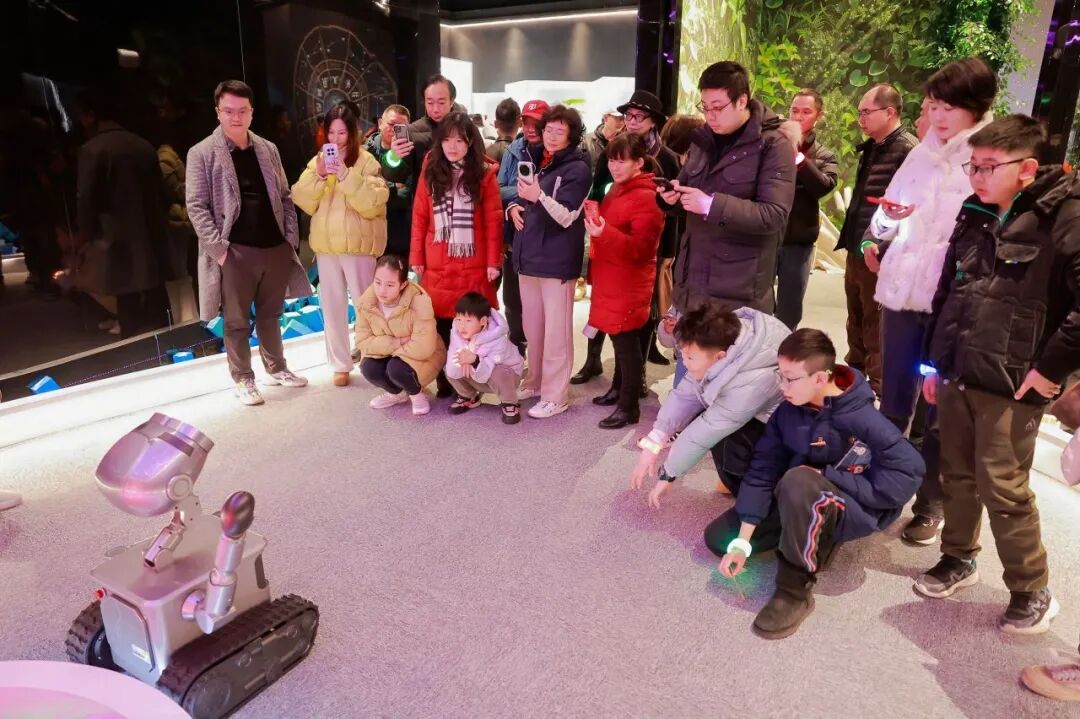 “‘萌机工坊’与楼上的‘创世之旅’形成呼应,共同构成了沉浸式剧场+前沿科技展厅+主题娱乐项目+叙事型零售空间的商文旅融合体,帮助大众更轻松地了解和接受人形机器人。”王丹介绍,春节期间,两家门店每天接待游客近千人次,其中绝大多数是亲子家庭,人形机器人正在成为大众的“新宠”。