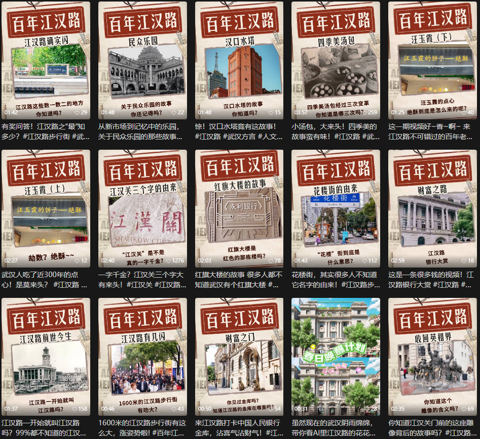 多维宣传全域发声,讲好江汉路故事:搭建线上线下联动的宣传矩阵,以江汉路步行街官方公众号为核心阵地,深挖街区历史文化故事、实时同步活动资讯、打造网红打卡点攻略,结合线下场景布置、活动落地实现沉浸式宣传,持续提升江汉路的知名度与影响力。特别策划《百年江汉路》短视频主题宣传,特邀光头黄热干面创始人黄克骏参与共创,以其深耕江汉数十载的独家记忆,多维度介绍江汉路,形成“建筑可阅读、街道可漫步、文化可感知”的立体视频体系。